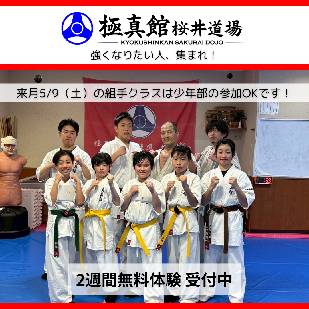 極真館桜井道場は、明るく・真面目に・楽しく空手に取り組める道場を目指しています。