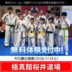 ------------------------------- 【新春】無料体験募集中! 10名様限定で空手着&入会金が無料に。 新しい事に挑戦してみませんか? ------------------------------- 【極真館桜井道...